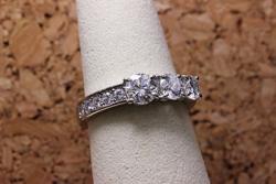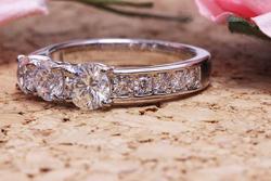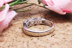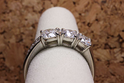 ダイヤを3つ並べて、一方のサイドにメレダイヤを彫り留めしたデザインをオーダーメイドで制作をさせていただきました。