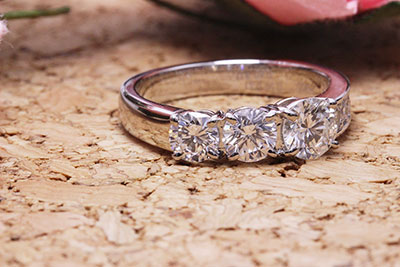 前置きが長くなりましたが、3つのダイヤが0.5、0.4、0.3カラットと大きさが違うのでご提案に苦慮しました。