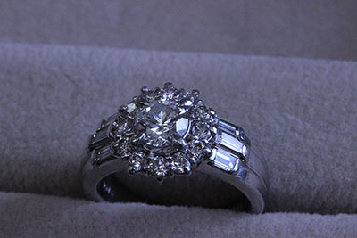 お持ちになったのは、メインのダイヤ0.6ctの周りにメレダイヤが取り巻いているデザイン。