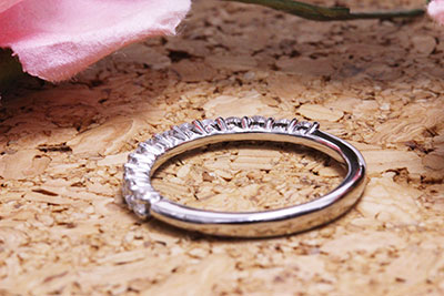 メレダイヤのサイズがハーフエタニティーの指輪の既成のデザイン枠に見合ったものでしたのでお作りすることが可能でした。
