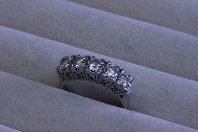 0.1カラットのダイヤが5石入った指輪。