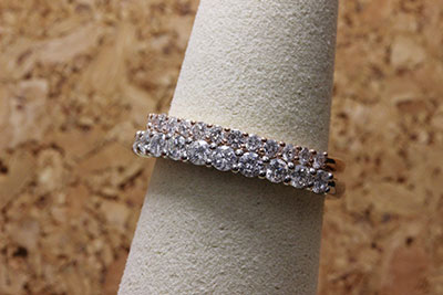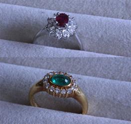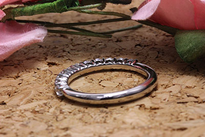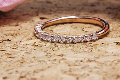 今回は、ルビーの指輪とエメラルドの指輪に使われているメレダイヤを使ってハーフエタニティーリングをお作りさせていただいた事例になります。