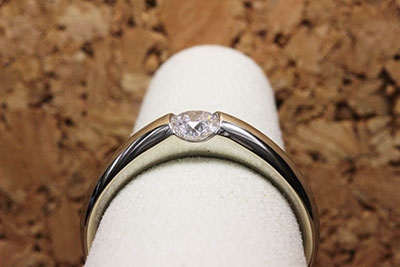 爪の引っ掛かりが気になると共に、お持ちのハーフエタニティーの指輪に重ねて使えるデザインにしたいとのリクエスト。