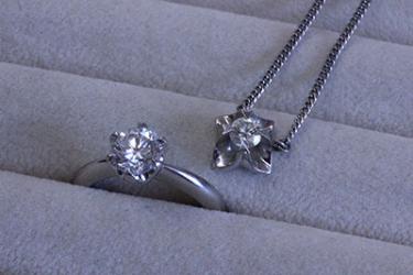 1カラットのダイヤモンドの指輪と、0.27カラットのダイヤモンドのネックレス。