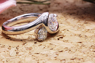 2つのダイヤモンドを1つの指輪のデザインにするには、選択肢が少ないので、