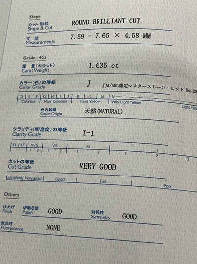 配送で当店にお送りをいただき、まずは鑑定機関で鑑定書を取得。