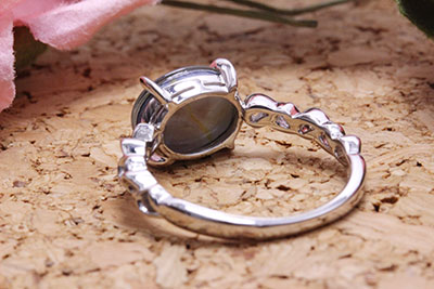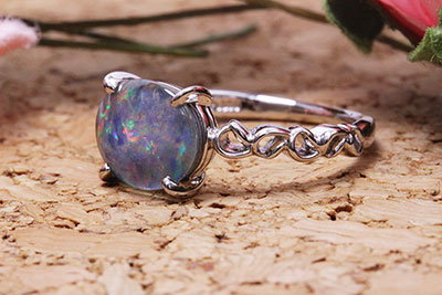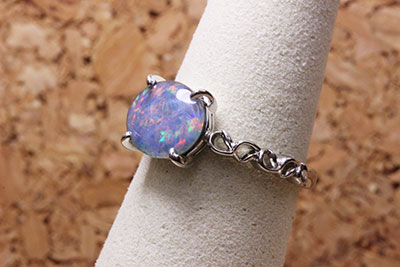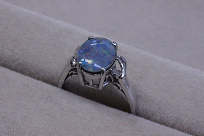 ホワイトゴールドのオパールの指輪。