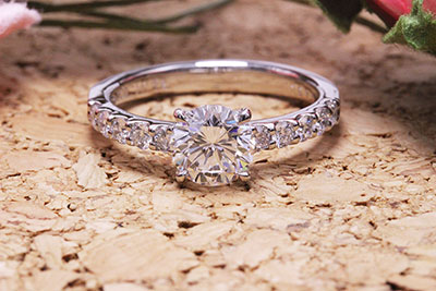 1カラットの指輪は普段使い出来るようなメレダイヤを両脇に置いたもの。