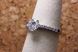 両サイドのメレダイヤを配置した、婚約指輪としても人気のデザイン。