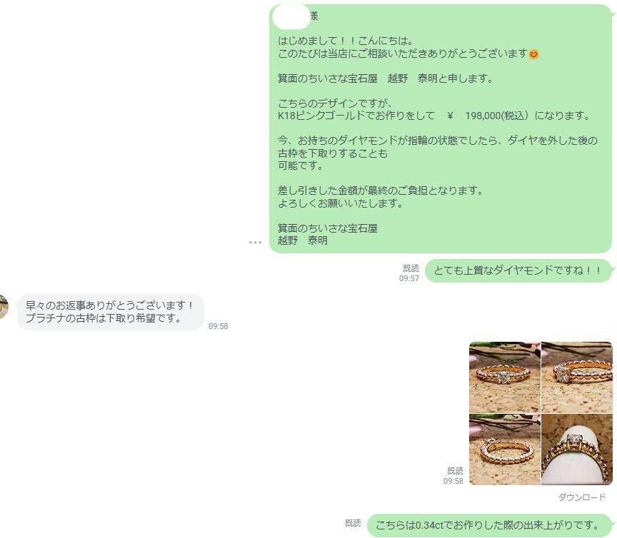 今回のお客様は鑑定書でダイヤモンドの大きさがより明確だったので、正確なお見積りをご提示させていただくことが出来ました。