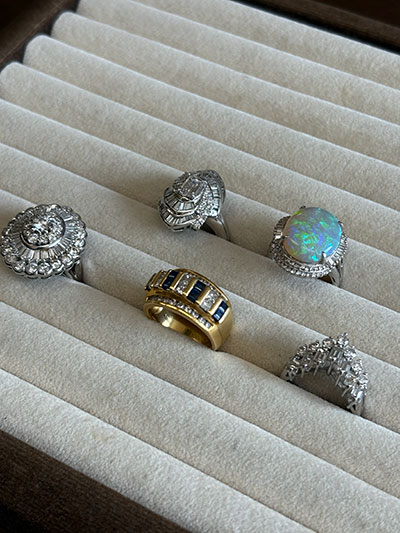 その他、昔ならではのダイヤモンドの指輪、エメラルドの指輪、オパールの指輪などもサイズを直して使って欲しいとの娘さんの願いをお聞かせ下さりました。