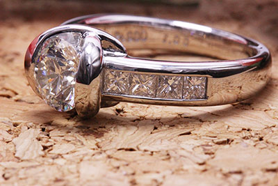 どうもしっくりこなくてデザインカタログをご覧いただき目に留まったのが、メインのダイヤモンドの両側にプリンセスカットのダイヤが4石づつセッティングされた豪華デザイン。