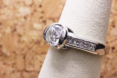 メインのダイヤも爪留めではなくレール留めのように地金で抑えた引っ掛かりがすくないデザイン。