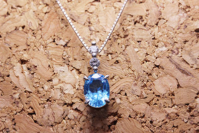 ブルートパーズの方は色味をお嬢様に気にいってもらってるそうで、かつサイズ的にも最適かと思い、ご納得の上、ブルートパーズでお作りさせていただくことに。
