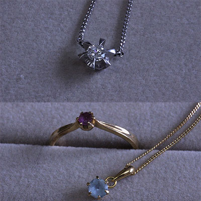 リフォームのデザイン選びの前に、まず下取りをお考えのジュエリーを拝見させていただきました。