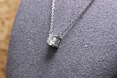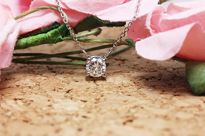 昔ならではの立て爪タイプのダイヤモンドの指輪については、シンプルな4本爪の石座にチェーンを直結させたデザインに。