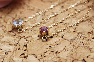 また、お二人の娘さんのためにルビーの指輪、アクアマリンのネックレスをお揃いのブレスレッドにお作りさせていただくことに。