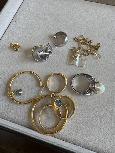1つ1つのジュエリーを査定、懸念されていたメッキ品もありましたが、かなり多くのジュエリーに評価がつき、リフォームでかかる費用もおおよそカバーできるのではないか。
