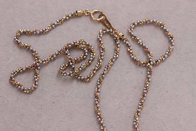 ダイヤを外した後の古枠、そして不要なプラチナとゴールドのコンビのネックレス
