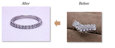 2. 角のダイヤは使わずに、ラウンドのメレダイヤのみを使って指輪にリフォーム