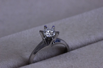 お持ちになられたのは、昔ならではの立て爪の指輪。