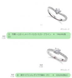 店頭で色々とサンプルをご覧いただき、ピックアップいただいたデザイン・費用をLINEに備忘録としてお送りさせていただきました。