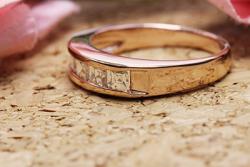 こちらは引っかかりのないダイヤを伏せこんだデザインをピンクゴールドで