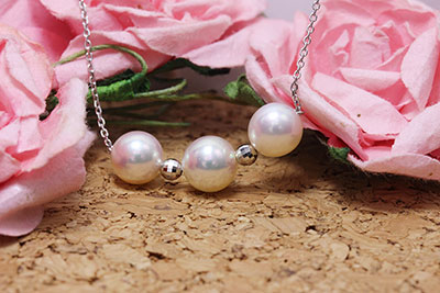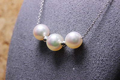 ちょうど店頭に真珠を5珠横に並べたネックレスのサンプルがありました。