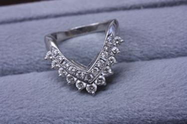 V字リングには2つの異なるサイズのダイヤが使われてますが、あえて大きいサイズの石だけでお作りさせていただきました(大きさが混合するとバランスが悪くなるので・・)