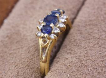 知らぬ間に1石なくなってしまってるのに気がついたサファイヤの指輪。