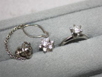 手元にはお母さまから譲り受けたダイヤモンドの指輪。そしてお父さまから譲り受けたダイヤモンドのタイタック。ずっとリフォームしようか悩んでおられたようです。