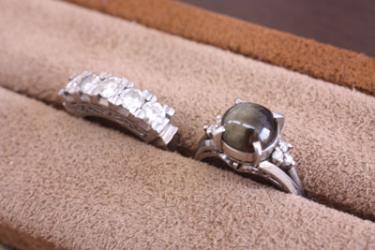 お母さまから譲り受けたという素敵なキャッツアイ(猫目石)と一文字の指輪。これらを使って普段使いできるネックレスにしたいとのご相談でした。
