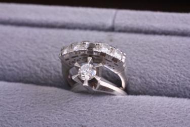 真ん中の石を紛失してしまった一文字の指輪。そして昔ならではの立て爪の指輪。