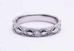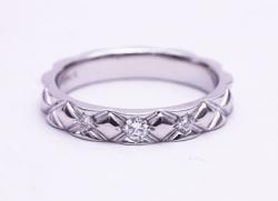 出来上がりの幅を優先して、一文字の指輪のちいさなダイヤを利用してお作りさせていただきました。
