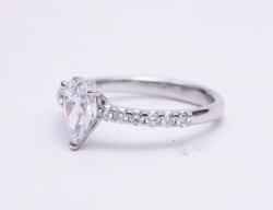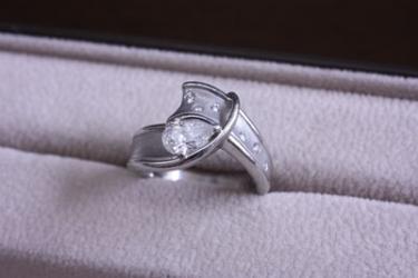 お母さまから譲り受けたペアシェープカットのダイヤモンドの指輪。