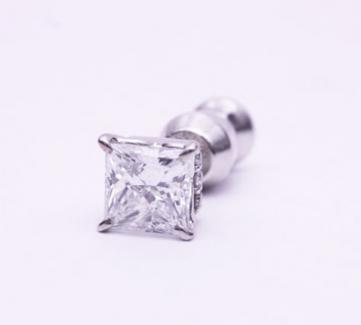 プリンセスカットのダイヤペンダントを男性用のシングルピアスに