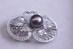 シルバー黒蝶真珠ブローチ、アメジスト加工 ¥ 64,800