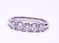 ダイヤを5つ横に並べるのは同じでも、少しデザインを変えるだけで印象はかなり変わってきますね。
