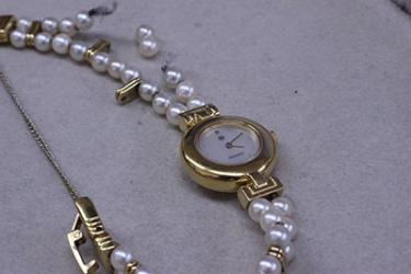 拝見すると、時計の機能は全く正常で、真珠の珠が1つだけなくなっている状況でした。