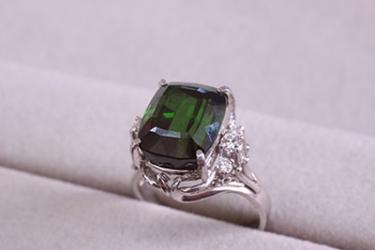 お母さまから譲り受けたグリーントルマリンの指輪。