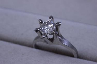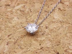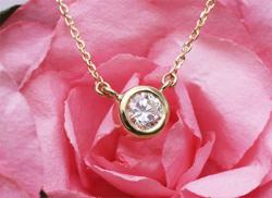1ctのダイヤモンドリングは定番の6本爪デザインに、そしてもう一つのダイヤモンドを素材をゴールドでフクリンタイプのネックレスにさせていただきました。