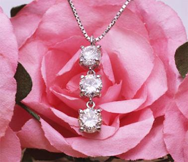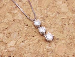それであれば、人気アイテムの一列のスリーストーンダイヤのネックレスにしてはどうかとご提案させていただきました。