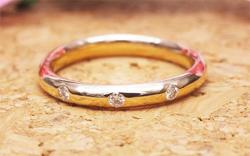 好みは分かれますが、後者の方がお好きだとのことで、地金をそのまま使って、平打ちの指輪を甲丸タイプにリフォームさせていただきました。