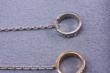 お持ちのネックレス。チェーンの先端にU字型のオシャレなTOPがついていて、前でクロスさせて使う人気のデザイン。