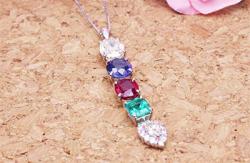 5つの宝石をタテにつないだ豪華なネックレスに出来上がりました。