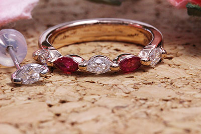 マーキースカットのルビーとダイヤを使ったお洒落なリングに