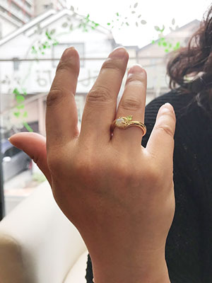 ペリドットが良い味を出してくれてますね。個性的なとてもおしゃれな指輪になりました。ぜひ普段からどんどん使ってくださいね。