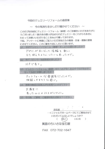 いったん宝石をお預けしてからもネット、お葉書で状況、予定等をお知らせいただきありがとうございました。